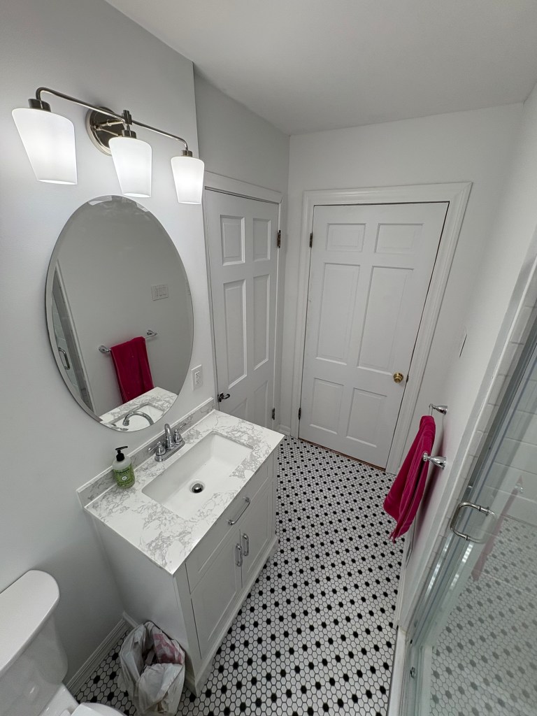 Curtain rod hanging White-washing brick fireplaces Repair of a stripped gas valve on an outdoor fireplace Picture frame wainscoting installationCabinet painting and pull hardware replacementElectrical-running new wire and installing outdoor patio lighting Full bathroom Renovation Full bathroom renovation